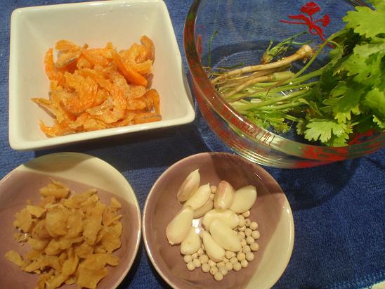 - กุ้งแห้งหยิบมือนึง (ไม่ต้องเยอะค่ะ) ล้างให้สะอาดเช่นกัน