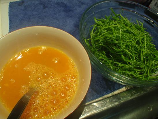 ไข่ที่เหลือจากการชุบมะเขือยาวทอดแล้วมีอีกนิดหน่อย