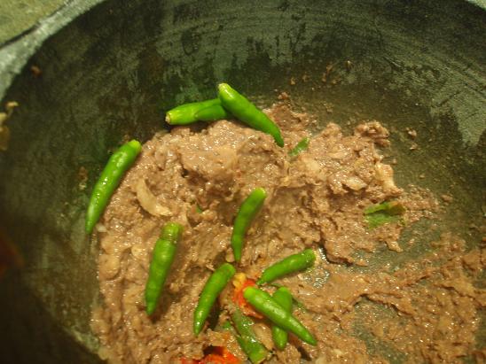 แล้วค่อยบุบพริกขี้หนูตามหลังให้หอมพริก