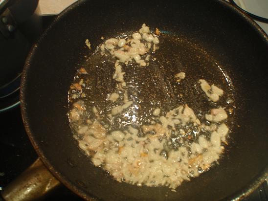 ตั้งกระทะ ใส่น้ำมันลงไปพอร้อน ใส่กระเทียมเจียวให้หอมค่ะ