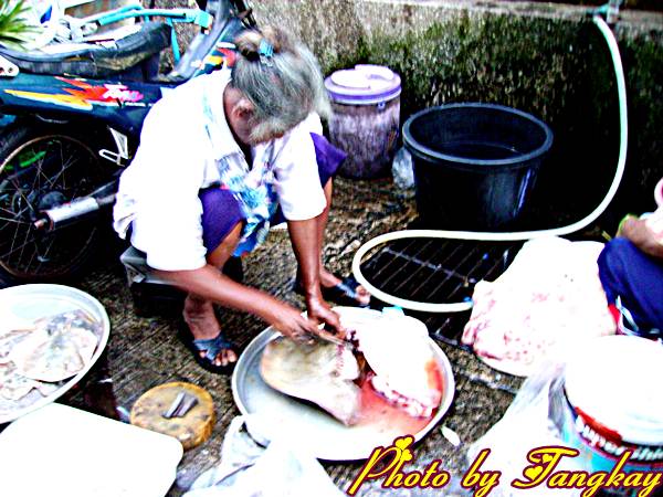 แต่ถ้าตัวโตหน่อยเขาก็จะนำมาตัดแบ่งขาย ปลากระเบนมีกระดูกอ่อนนะ