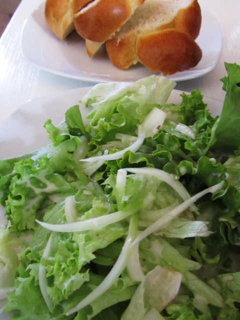 จัดแยกให้คุณชาย มีสลัดผัก ขนมปัง มายองเนสไว้จิ้ม